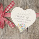 Adicione um toque rústico charmoso aos seus favores de casamento com este obrigado em forma de coração que você cola, com um vibrante buquê de flor silvestre a aquarela. Ideal para potes, bolsas ou caixas, esta design corajosa é perfeita para as comemorações de primavera e verão. Personalize com nomes e data para um detalhe de finalização que os convidados adorarão.