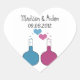 Tão divertida e nerd são estes Stickers de Casamento da Science of Love que apresentam um par de beakers, um a azul e o outro na fuchsia, com bolhas de coração bonitinhas. Esta design única e peculiar é perfeita para aquele casal nerd querendo algo memorável que corresponda às suas personalidades peculiares! Fácil de personalizar, simplesmente adicione os detalhes do dia do seu casamento nos espaços fornecidos. Clique no botão "Personalizar a TI" para encontrar opções adicionais de personalização.