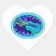 Adesivo Coração Ukulele com folhas e círculo de flores, azul