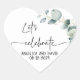 Vamos celebrar com nomes personalizáveis e datar um adesivo redondo moderno e minimalista. O texto "Vamos Celebrar" está numa letra moderna com glifo. O autocolante tem uma ramificação de eucalipto no lado direito "enquadrar" no texto. Use este adesivo como parte da coleção de Casamentos ou mude o texto para sua ocasião, ex. Aniversário, aniversário ou outro. Adicione ao seu correio ou a um saco de presentes quando seu convidado estiver chegando à Respeição ou festa. Se quiser Personalizar mais (tipo de fonte, tamanho e cor) - você pode fazer essa dentro da Ferramenta design. Disponível em diferentes tamanhos e formas.