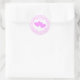 Adesivo redondo com texto Personalizável. Um coração conectado cor-de-rosa rodeado por muitos corações pequenos e texto Personalizável. Perfeito em sacolas de presente para os convidados do casal. Estes adesivos podem ser usados para muitas ocasiões, casamentos, aniversários ou outro evento - personalize o texto para se adequar ao seu evento. Compartilhe o amor.