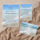 Dois corações de casamento praias encravados na areia fazem um elegante casamento náutico costeiro do oceano tropical, combinando um conjunto de itens. Ondas de água turquesa bonito que caem na costa e céu azul pastel.