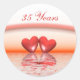 Vestidos com meu design de dois corais flutuando na água sob um arco-íris. O texto personalizável diz "35 anos".