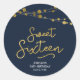 Este elegante e doce adesivo redondo de 16 anos apresenta cordas de luzes e a palavra "Doce Dezesseis" em ouro falso contra fundo azul escuro. Veja outros itens correspondentes aqui https://www.zazzle.com/collections/strings_of_lights_faux_gold_celebration_collection-119311942951401241?rf=238364477188679314 Personalize-o com seus detalhes substituindo o texto do marcador de posição. Para obter mais opções, clique no botão "Personalizar". *Observe que a Marca d'água do Zazzle que aparece na visualização de zoom NÃO aparecerá no produto impresso final. © Rosewood e Citrus