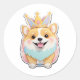Corgi feliz com coroa minúscula e cauda ondulada em cores pastel.