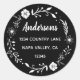 Este adesivo personalizável com tipografia simples, caligrafia moderna e uma coroa de flores rústica.