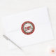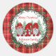 Três gnomos fofinhos desejando a todos um Feliz Natal dentro de uma coroa de azevinho e frutas vermelhas em um fundo xadrez vermelho festivo. O adesivo é personalizável. Basta clicar no botão "personalizar" e você pode alterar a saudação e o nome.