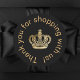 Fundo de cor preta. Texto: Obrigado por comprar conosco! Decorado com uma coroa de ouro falsa. Você pode substituir a coroa pelo seu logotipo.