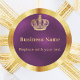 Fundo roxo, decorado com uma falso estrutura dourada e coroa. A cor roxa é irregular. Personalize e adicione seu texto.