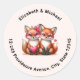 Vinhetas com uma imagem adorável de 2 raposas vestindo óculos cardíacos agudos de cor rosa. Decorado com sotaques cardíacos.