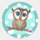 Adesivo Coruja de Aquarela Cuta com Bolinhas Teal