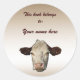 Estes autocolantes apresentam uma vaca muito doce e séria, com face brava e branca, nariz rosa e orelhas castanhas escuras. Excelente para identificar os livros em sua própria coleção, eles também farão um presente maravilhoso para os amantes do livro! Personalize com seu nome pessoal.