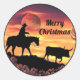 Personalize este único "Um tipo" de adesivo de Natal Ocidental! Apresentando uma Silhueta de um Cowboy Cavalgando um Cavalo Fazendo um Roubo Longhorn durante uma bela noite de Lua Laranja!