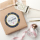 Um adesivo de cozinha com um na moda e fundo elegante de marinho azul e mármore dourado. Camadas sobre o topo é um círculo com uma borda falsa de folha de papel dourada com o seu dentro de texto personalizado. O texto diz "Homemade with love" com um pequeno coração rosa.