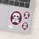 Ilustração original de Pip Gerard (Pip Pip Hooray) COPYRIGHT 2016. Tia branca e rosa engraçada, preta de muertos perdidos, ilustração do estilo Dia da Morte do Crânio de Açúcar. Apresentando elementos e padrões tribais detalhados em toda a parte. A borda escalada enquadra o motivo escuro. decoração de Halloween ou para aqueles como eu que gostam do crânio de açúcar a qualquer momento do ano! Estes adesivos são à prova de água, à prova de fogo e à prova de riscos! Perfeito para a janela do seu carro traseiro ou talvez no seu laptop? Com 1 adesivo de grande dimensão e dois autocolantes de tamanho inferior numa folha de vinilo. Cada adesivo é cortado por mortes/beijos e pronto para descascar e colar onde quiser.