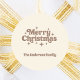 Um fundo colorido creme, texto marrom empoeirado mocha. Feliz Natal é escrito com uma fonte retrô do estilo 70. Personalize e adicione um ano e seu nome de família.