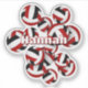 Este adesivo amovível amovível de vôlei divertida pode ser personalizado com o nome de um atleta e apresenta a imagem de um bando de volichões vermelhos, negros e brancos de tamanho variado - por katz_d_zynes
