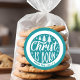 Celebre o verdadeiro significado da época com este Adesivo Redondo Clássico Azul e Branco "Cristo Nasceu" Personalizado! Com um design sereno em azul e branco, este adesivo apresenta a mensagem "Cristo Nasceu" em tipografia elegante, tornando-o um belo complemento para seus cartões de Natal, presentes ou lembrancinhas de festa. As cores suaves e a mensagem religiosa trazem um toque pacífico e espiritual às suas celebrações de Natal. Personalize-o com um nome ou saudação especial para um adesivo de Natal sincero e significativo que reflete a alegria da época.