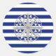 Um cromo prateado como uma design de bússola de estrela em uma decoração marinho de listras azuis. Um presente náutico moderno. Use o link "Perguntar a este Designer" para entrar em contato conosco com suas solicitações especiais de design ou para obter assistência com qualquer das suas necessidades de personalização.