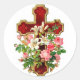 A cruz vermelha e dourada com uma profusão de flores bonito foi cuidadosamente retocada para trazer os maravilhosos detalhes. Há Páscoas brancas Lillies e rosas rosas.