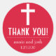 Cruz Religiosa Obrigado Labels (Vermelho / Branco)...Este obrigado religioso clássico que você rotula é a adição perfeita ao seu obrigado que você prefere para o seu casamento de destino cristão. Perfeito para noiva e noivo que estão tendo um casamento religioso tradicional. Excelente para o casal que está unido no Santo Matrimônio completo com uma massa católica. A design apresenta uma cruz sagrada. Perfeito para buffets de doces. Consulte WindyCityStationery.com para ver nossa linha completa de etiquetas da "Cruz Religiosa" em uma ampla variedade de cores, além de carimbos de postagem da "Cruz Religiosa", obrigado cartas, etiquetas de endereços de retorno, salve as datas e muito mais.