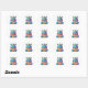 Round sticker is shown with a cute cupcake birthday blue monster print.