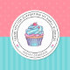 Cupcakes de pastelaria obrigado seu adesivo. Cupcake de cereja, cor-de-água, rosa e fosco azul, com dois corações cor-de-rosa e azuis.