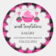© 2021 Socialite Design Inc. Estes cupcakes elegantes e rústicos e pop de bolo, com fundo de xadrez de búfalo, são um design para usar como selos em embalagens de padaria.