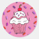 Cupcake branco desenhado à mão com glacé branco e borrifado com uma bochecha no topo, adesivos de cupcake. Um bom aniversário favorece ou sela um convite de aniversário. Também é bom para lidar com doces a bolsas em festas de aniversário, casamentos ou chás de fraldas.