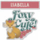 Cota Foxy. Mostre seu amor pelas raposas com esta ilustração bonitinha e caprichosa desenhada à mão. Personalize o nome e crie um presente especial e divertido. —> NOTA: esta folha contém dois (2) adesivos separados. Somente o nome na banda rosa pode ser alterado. Não é possível editar as palavras "Foxy Cute".