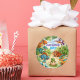 Make your child’s birthday party extra fun with this adorable Dinosaur sticker! Featuring a cheerful group of colorful cartoon Dinosaurs gathered around a newly hatched baby Dino, this playful jungle scene is full of personality and charm.
