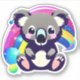 Um urso de desenho animado, coala, sentado em frente a um arco-íris.
