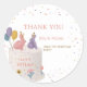Celebrate a sweet milestone with this adorable illustrated sticker, featuring two pastel bunnies perched on a birthday cake beside a golden number one, balloons, flowers, and colorful confetti. The soft, whimsical artwork makes it perfect for a cheerful first birthday celebration.