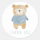 Adicione um toque doce e encantador ao seu chá de bebê com este adorável obrigado que você rotula com um ursinho de peluche estilo aquarela dormindo em tons suaves e azuis. Perfeito para selar envelopes, decorar bolsas favoritas ou caixotes de presentes, este design azul pastel traz calor e apreço sincero à sua celebração. Com seu gentil tema animal e estilo acolhedor, é uma maneira ideal de obrigado de convidados em qualquer partido recém-nascido ou neutro em relação ao gênero.