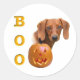 Sua raça AKC diz Feliz Halloween com um BOO! Trate alguém para um presente de Halloween Dachshund em uma camisa, caneca, cartão, chaveiro, mouse pad e muito mais.