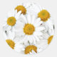 Várias adesivos de fotos redondas, amarelas e brancas, do Shasta daisie