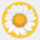 Bela e alegre margarida amarela e branca em um adesivo redondo amarelo de fundo correspondente