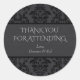 Damas Pretas E Cinzas Agradeçam A Vocês, Stickers. Cinzas escuras no estilo gótico com embelezamentos damascos pretos. Este design faz parte da nossa Coleção de Casamentos tema damasco Góticos. Projetado por Metro-Events.com