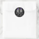 Comece a dançar com estes esqueletos com este adesivo divertido para uma celebração do Dia das Bruxas. Estes esqueletos estão dançando um jig e estendendo um convite para vocês com as palavras para "dançar comigo". A mão pintada na arte original apresenta esqueletos dançarinos com chapéu roxo em seus crânios e está nas cores preto e branco com roxo e verde limão para bordas ou sotaques. Procure meus outros produtos com esta arte para produtos de luxo para o Halloween incluindo convites, cartões de saudação, camisetas e muito mais. Totalmente personalizável para personalização. A arte original é de Phyllis Dobbs que deseja um feliz e brilhante Dia das Bruxas.