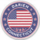 Darien Connecticut, autocolante de Darien com bandeira dos Estados Unidos, forma arredondada