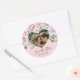 Casamento cor-de-rosa com fotos de coração personalizadas de casal romântico salve o adesivo de data com rosas elegantes e texto de caligrafia de script. +++++ É fácil personalizar com seus nomes, texto e detalhes. Perfeito para uma festa de noivado, salve a data, lembrete da data do casamento, adesivo de foca, etiqueta de presente.