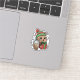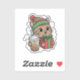 Adesivo de Natal de gato kawaii fofo com um gatinho festivo segurando café e um presente. Perfeito para laptops, garrafas de água, diários e presentes de Natal para amantes de gatos.