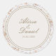 Este adesivo de casamento floral Boho apresenta flores silvestres sólidas, nomes em letra cursiva e tipos de letra clássicos. As flores da primavera tornam este adesivo boêmio. Perfeito para um casamento inspirado no vintage, um casamento de jardim ao ar livre ou um casamento clássico e atemporal. Clique no botão Editar para personalizar e personalizar os detalhes deste design. Encontre itens correspondentes na Coleção de Casamento Floral Boho.