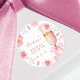 Adesivos de Chás de Noiva Pétalas Prosecco com Laço Rosa com uma taça de prosecco dourada e rosa adornada com delicadas flores rosa e um laço rosa. O design é perfeito para um brunch temático de Pétalas e Prosecco e celebração espumante.