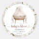 Adicione um toque doce e elegante à sua chuvada de bebê com este adesivo redondo Baby in Bloom, apresentando um berço em aquarela, flores neutras e escrita boho suave. Perfeito para selar envelopes, decorar sacolas de favor ou personalizar caixas de presente, este adesivo traz charme e coordenação ao seu evento. Personalizado com o nome da homenageada e data, é um detalhe final lindo para uma chuvada de bebê moderna, rústica ou botânica.
