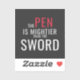 Design de tipografia minimalista apresentando a citação clássica “A caneta é mais poderosa que a espada.” Um adesivo moderno e ousado perfeito para escritores, leitores, estudantes e amantes de citações literárias.