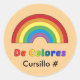 Ilustração original de um arco-íris e o texto com a menção "De Colores". O espaço é fornecido para personalização - nome da igreja ou número Cursillo.