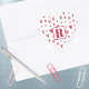 Corações coloridos de confeito em padrão e monograma inicial emoldurado decoram esses adesivos festivos em forma de coração. Impressos em cores vibrantes em papel brilhante; opaco também está disponível mediante um custo adicional. Altere facilmente a inicial usando o modelo fornecido. Este design se ajusta a algumas das outras formas disponíveis. Vinte de 3,8 cm por folha (mostrada); adesivos circulares e quadrados de 7,6 cm, seis por folha; adesivos ovais ou retangulares de 11,4x6,8 cm (4) por folha. Veja "Sobre Este Produto" ao lado para mais informações.