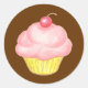 Um cupcake rosa fofinho decora este adesivo. O design é de uma ilustração original.