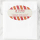 Este é um adesivo que diz alegre. Isto seria um excelente adicional a um sistema de identidade para um negócio centrado nas crianças, incluindo um salão para crianças, um doce compro, um compro de sorvetes ou um lugar de brincadeira. Laranja brilhante e faixas vermelhas na diagonal dão-lhe um pouco de brilho com texto personalizado em destaque num painel creme. Feche as bolsas de compra do cliente, use para promoção ou como envelope e selos de pacote. Disponível em cores alternativas com produtos correspondentes. com